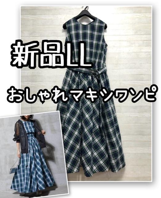 - 新品☆LL♪チェック柄おしゃれマキシ丈フレアワンピース8900円を☆Q227