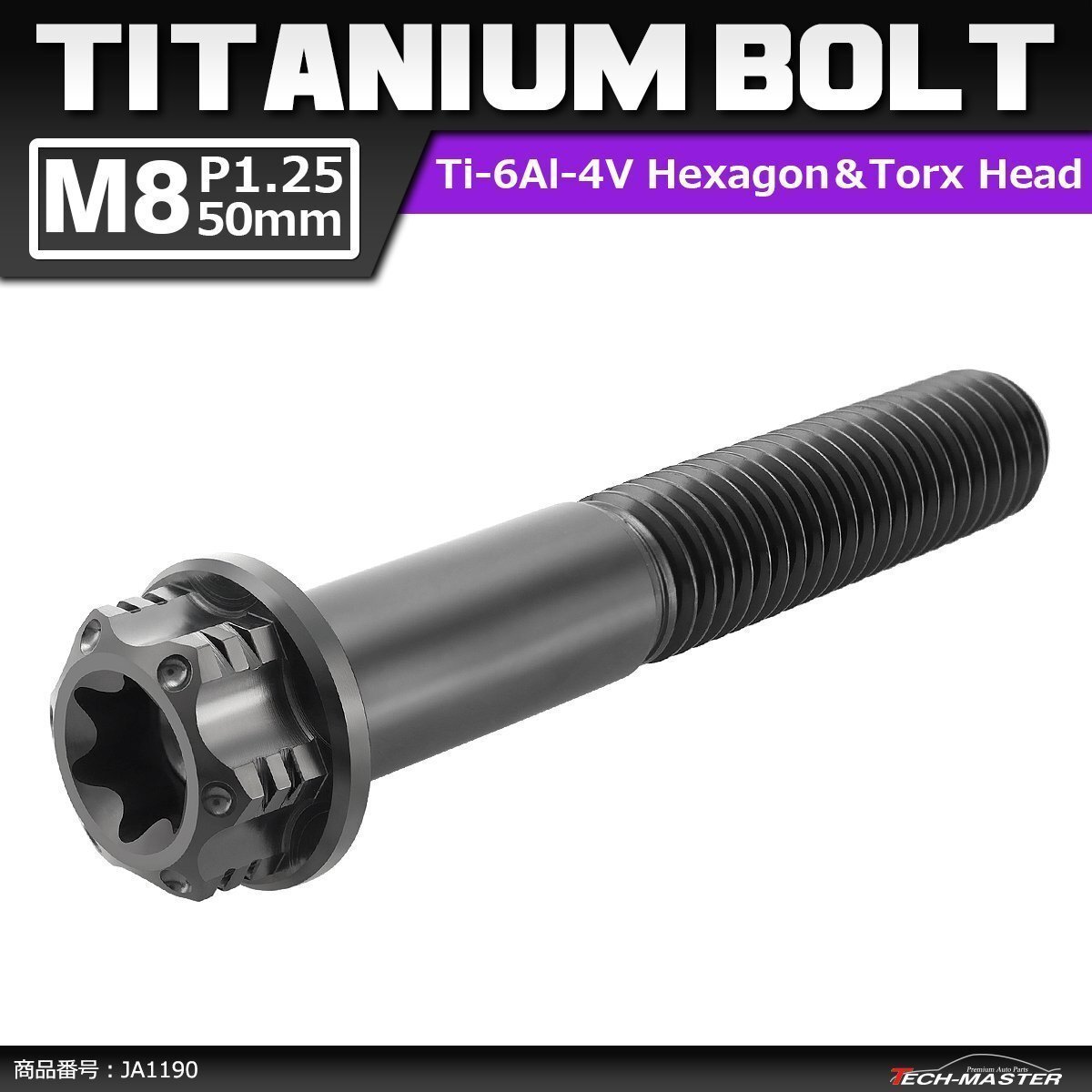 > M8×50mm P1.25 64チタン合金 ヘキサゴン トルクスヘッド キャップボルト フランジ付き ブラック 車/バイク/自転車 1個 JA1190