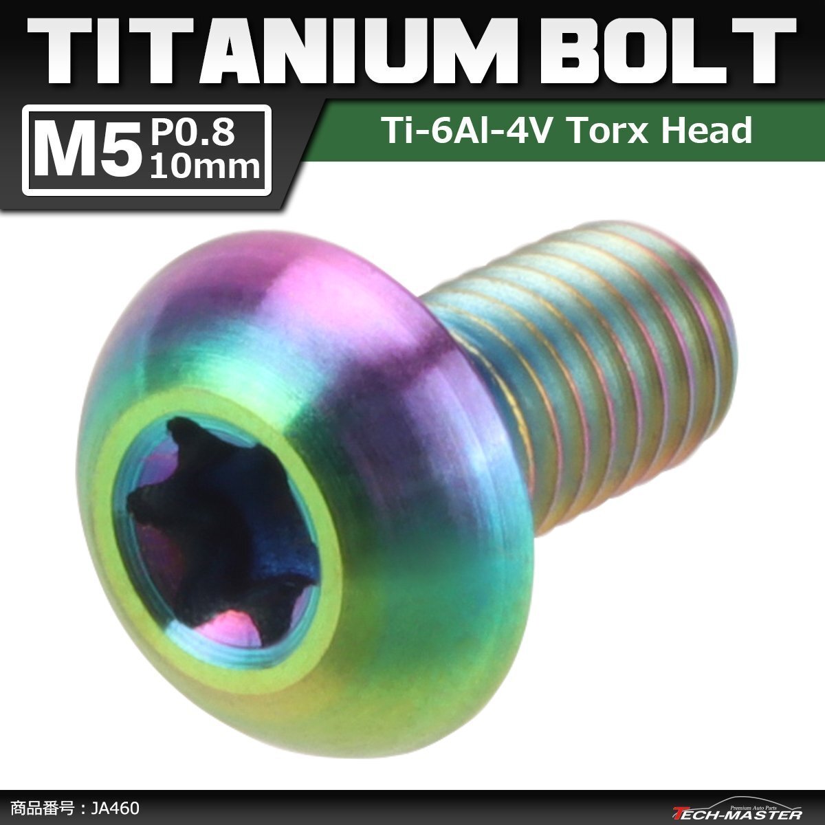 > M5×10mm P0.8 64チタン合金 トラスヘッド トルクス穴付き ボタンボルト 焼きチタンカラー 虹色 車/バイク/自転車 ドレスアップ 1個 JA460