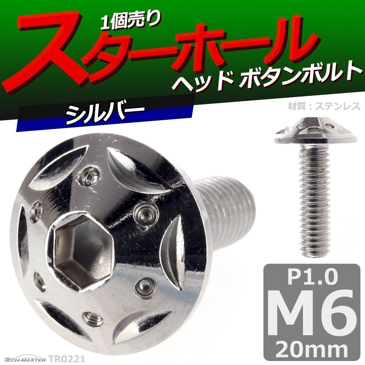 > M6×20mm P1.0 ボタンボルト スターホールヘッド ステンレス 車/バイク/自転車 ドレスアップ パーツ シルバー 1個 TR0221