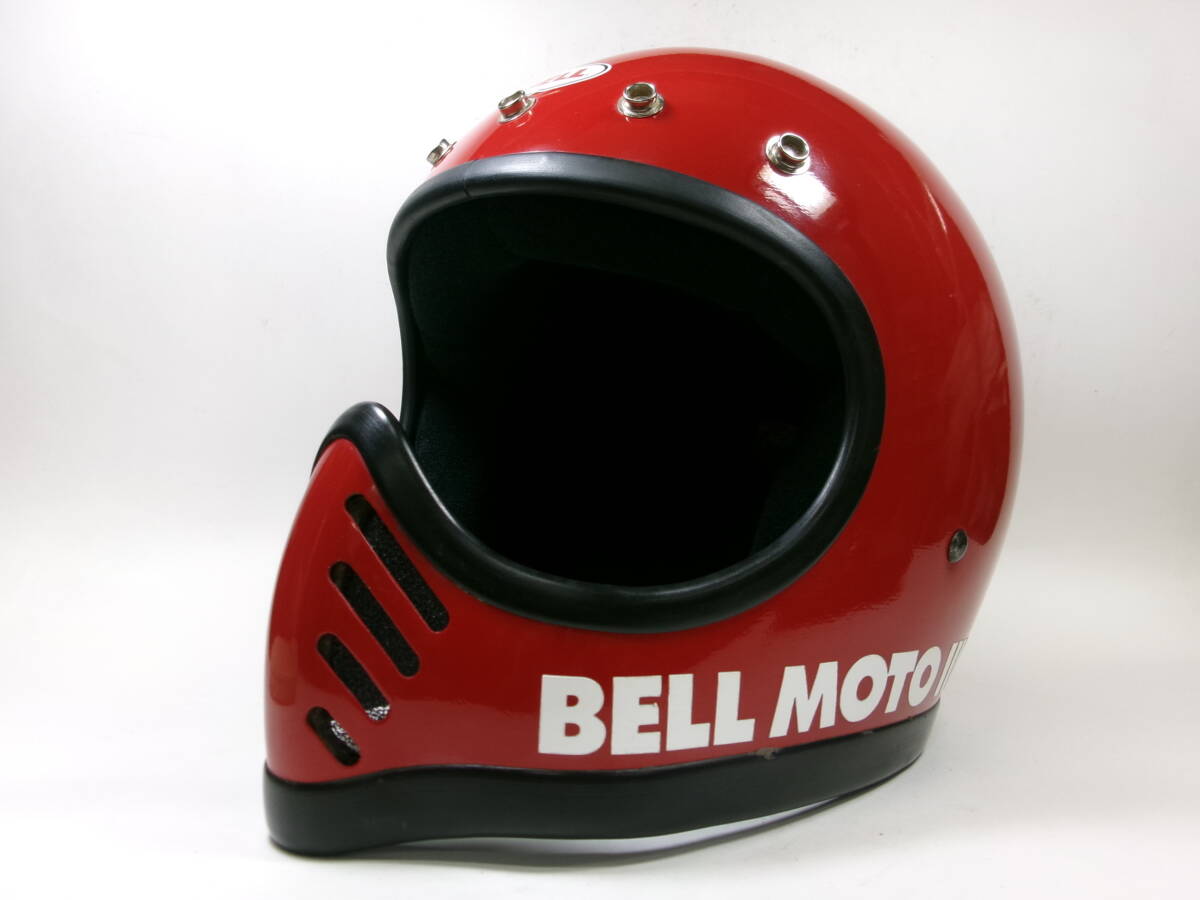 - 最初期 70s BELL MOTO 3 赤 7 3/8 フルフェイスヘルメット 目深加工済み L ★ 70年代 ベル モト3 スター MOTO STAR オフロード モトクロス