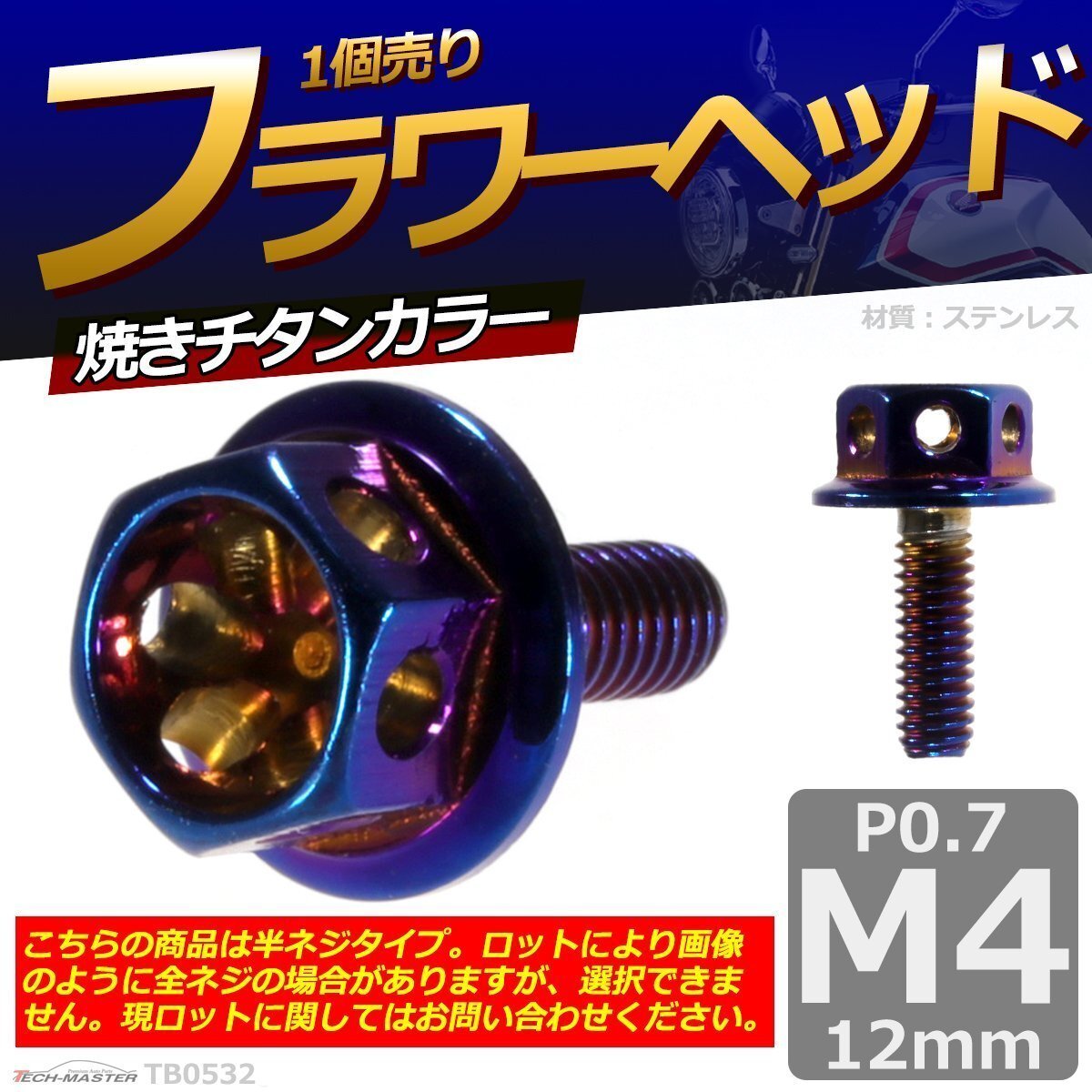 - M4×12mm P0.7 フラワーヘッド 六角ボルト ステンレス 車/バイク/自転車 ドレスアップ 焼きチタンカラー 1個 TB0532