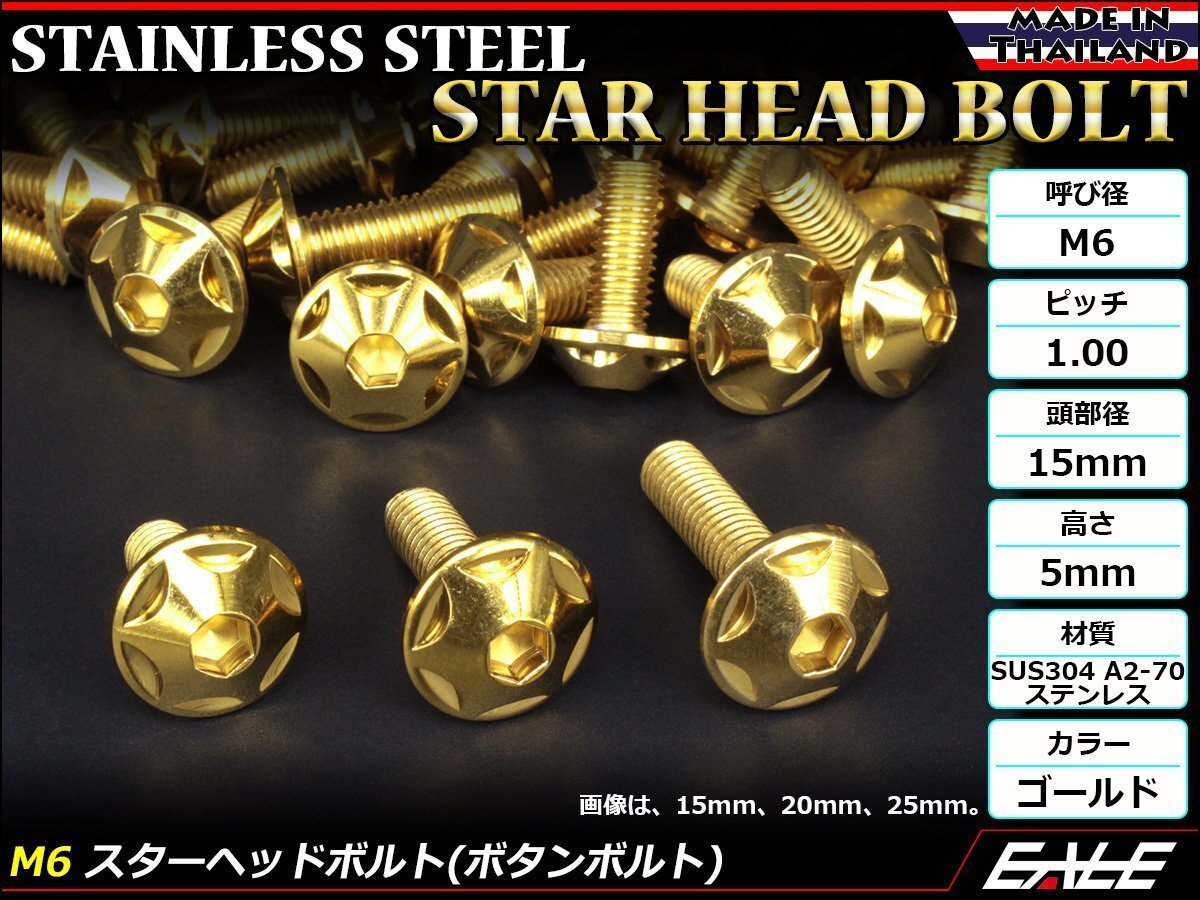 - M6×35mm P1.0 スターヘッドボルト ゴールド ボタンボルト ステンレス削り出し カウルやパネル スクリーン などの外装品に TR0028