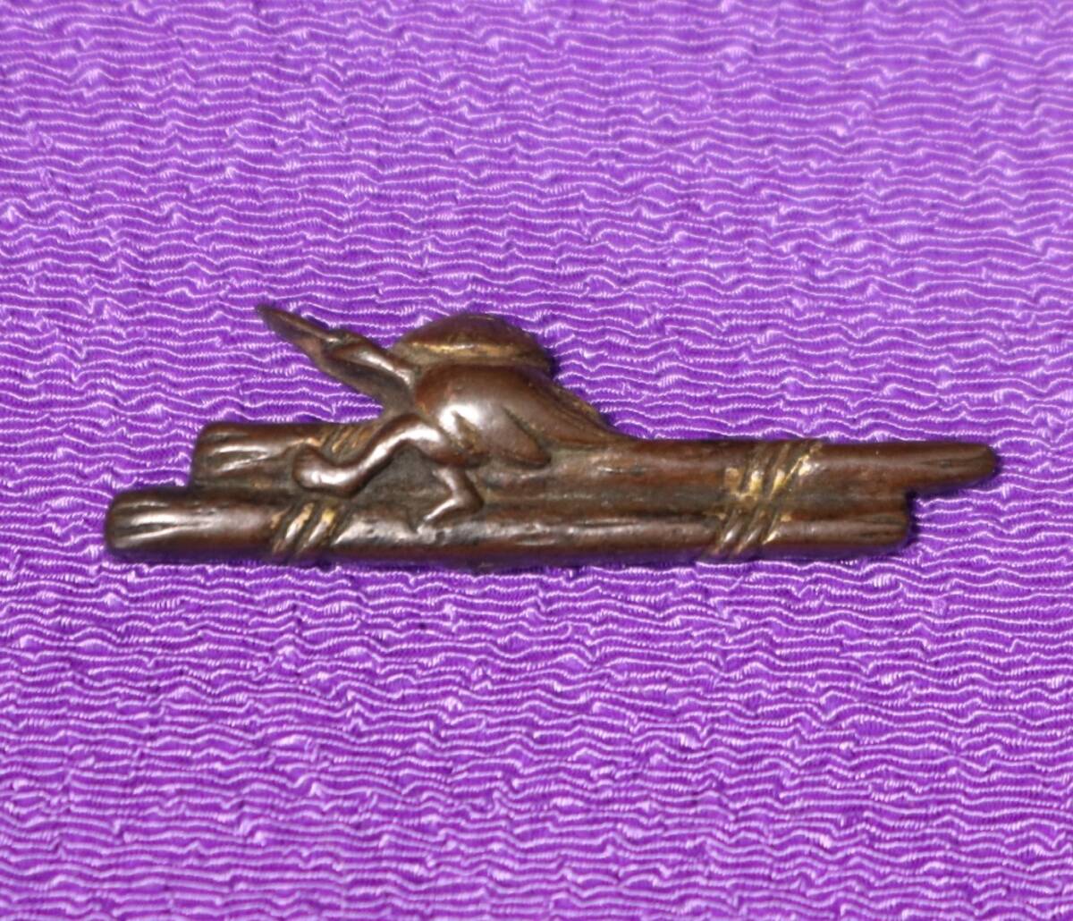 - 古銅 時代目貫~筏に乗りて鉄砲を構えたる蓑翁風景~金具 骨董 古民具 アンティーク レトロ