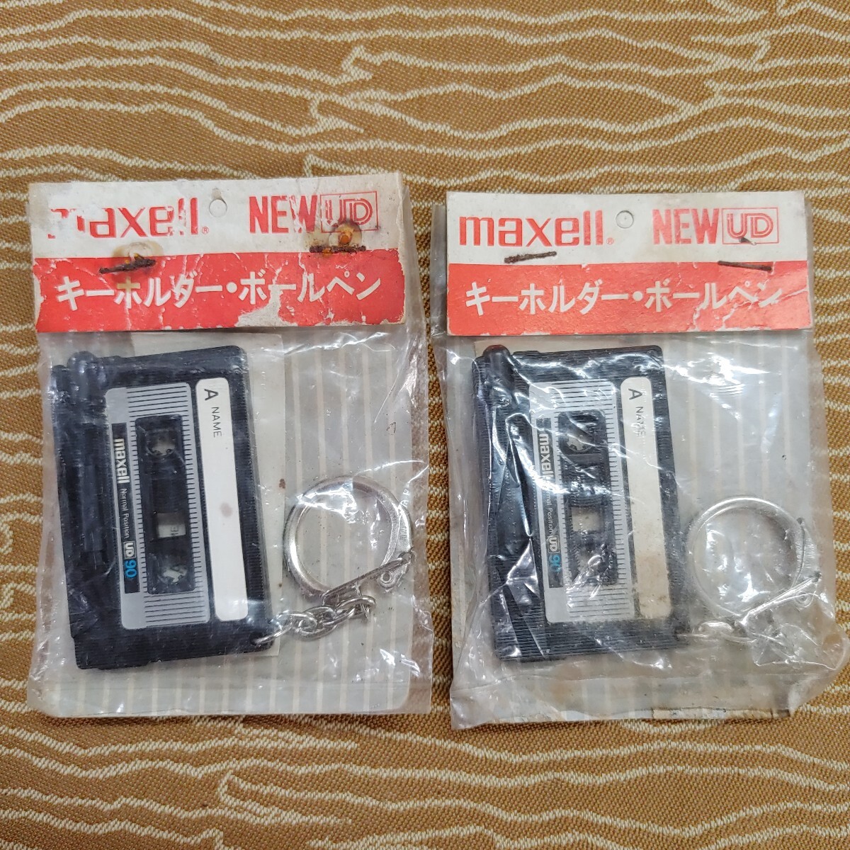 - 【maxell カセット型 キーホルダー 2個 ①】現状品 キーホルダーボールペン カセットテープ レトロ マクセル NEW UD 当時物 【B8-3①】0903