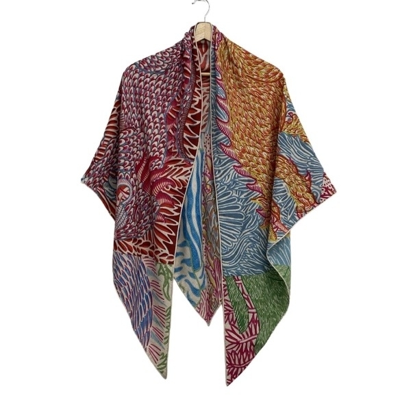 - エルメス HERMES ストール(ショール) トライアングルジェアン カシミヤ、シルク レッド×ライトブルー×マルチ JAN BAJTLIK 美品 マフラー