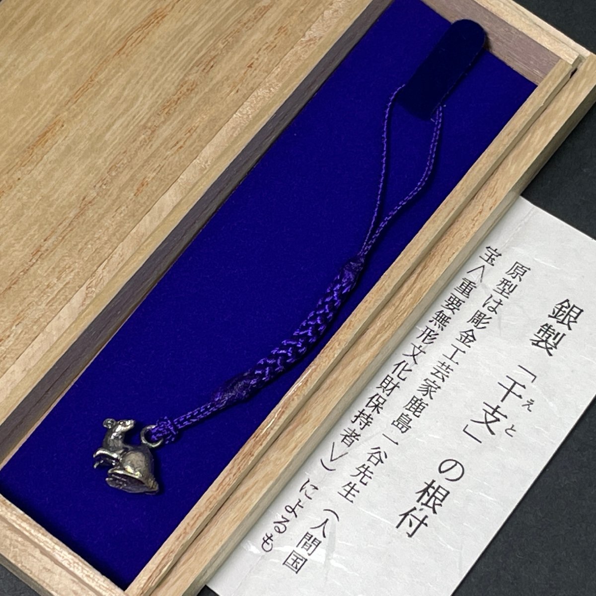 m002 (10) 4 未使用 田中貴金属 GINZA TANAKA シルバー SV900 銀製 干支 根付 子 ネズミ 鼠 キーホルダー チャーム ストラップ 共箱