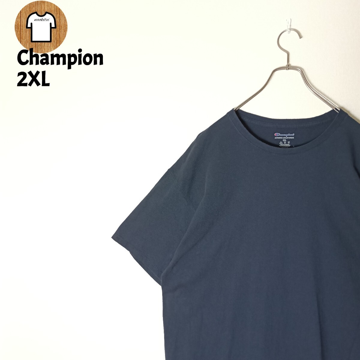 > Champion 半袖 Tシャツ 2XL 3L ネイビー紺 B143 ビッグサイズ 大きい ゆったり チャンピオン 無地 ワンポイント刺繍ロゴ