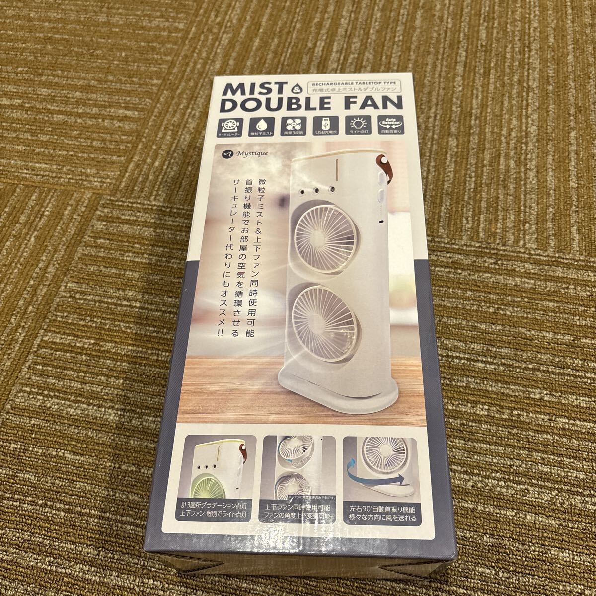 - 充電式 卓上ミスト ダブルファン 扇風機 自動首振り サーキュレーター