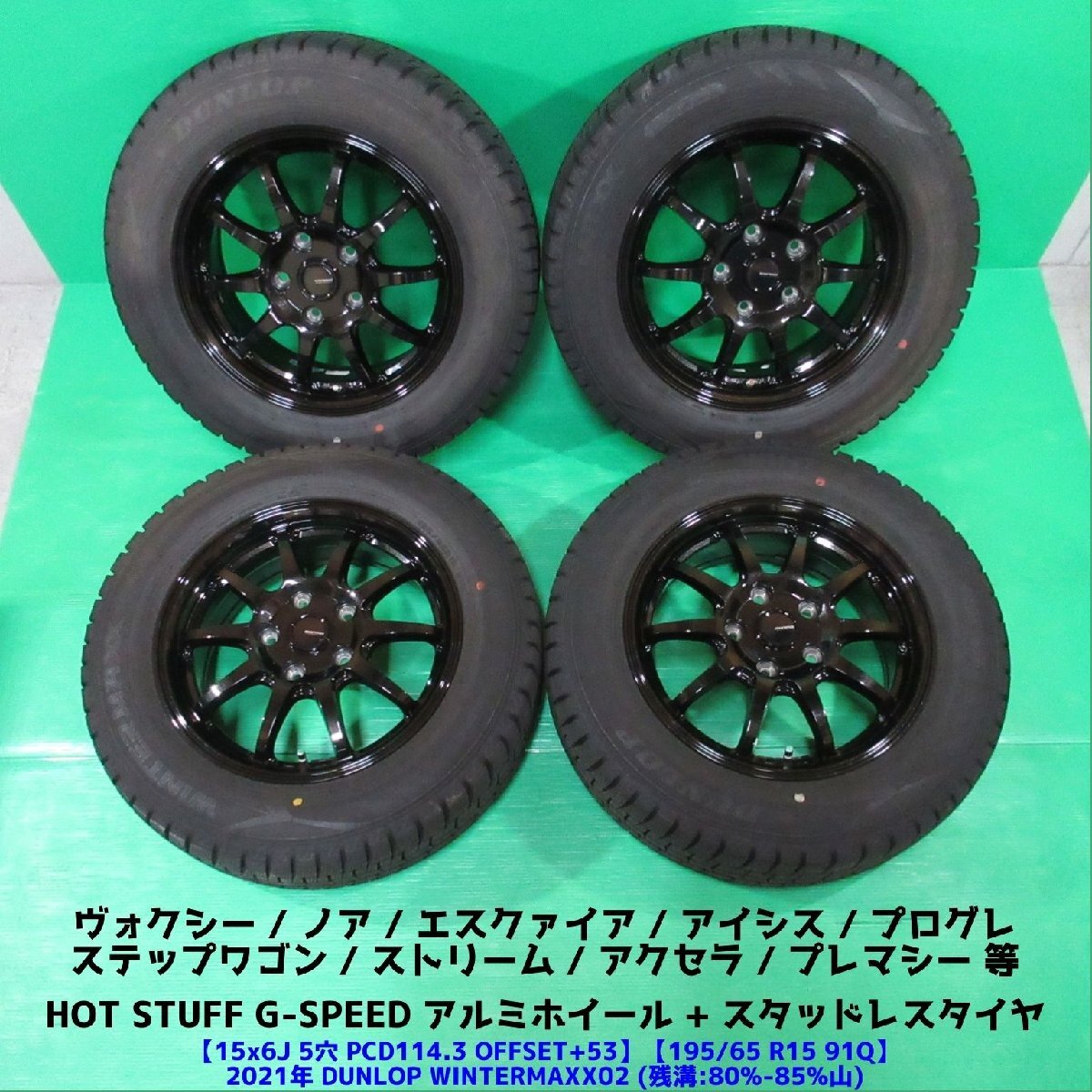 > 美品 ノア 195/65R15 バリ山スタッドレス 85%山 DUNLOP WINTERMAXX02 4本 5穴PCD114.3 +53 エスクァイア ステップワゴン アイシス 中古新潟