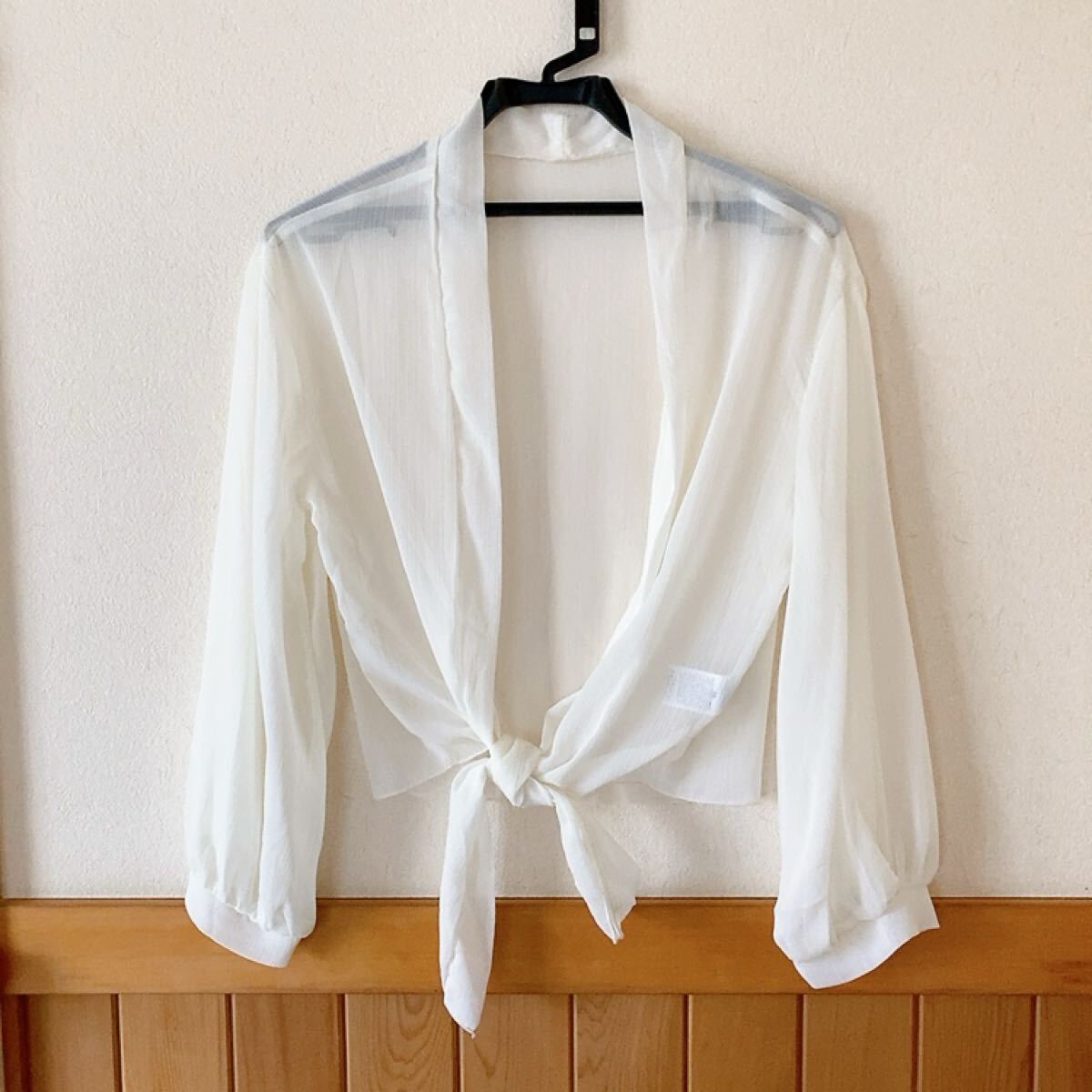 - 【未使用】薄手 ランタンスリーブ ウエストタイ カーディガン