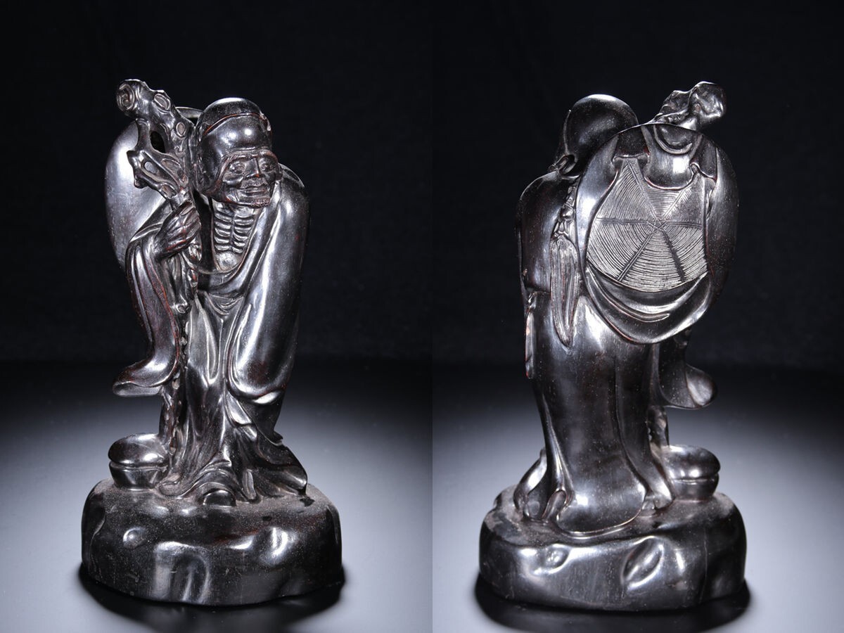 - 「清時代 紫檀の木 彫り 長眉羅漢 擺件」極細工 擺件 賞物 古美術 骨董品 旧蔵出