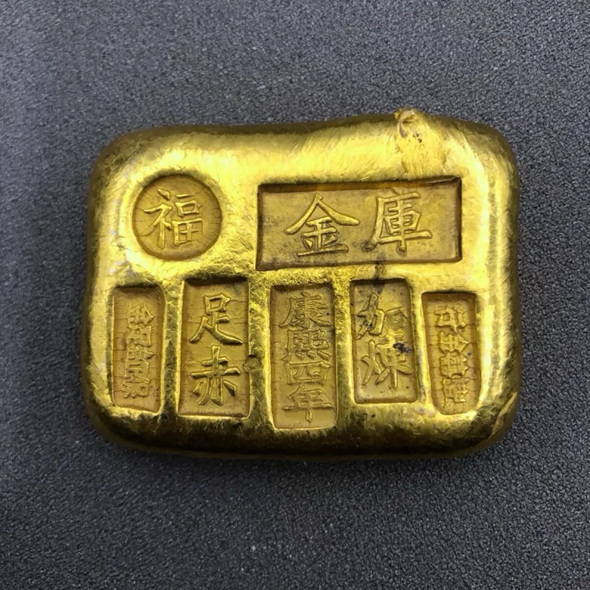 - 極美品 希少 福 特製加煉金庫 金塊 金元寶 足赤 金庫保管 光緒 康熙4年 元寶 中国 清 古銭 骨董品 大型硬貨 外国コイン