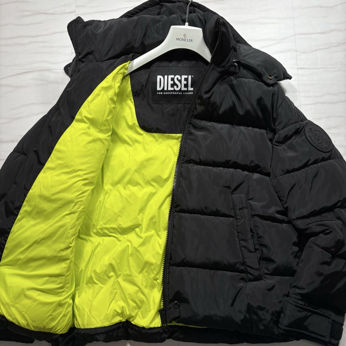 - 極美品/L相当◎ディーゼル 近年タグ ダウンジャケット ロゴワッペン バックロゴ アウター バイカラー フード着脱 2way ブラック 黒 DIESEL