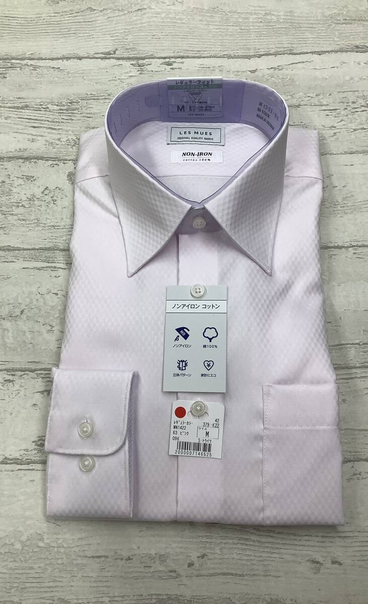 - 新品未使用 カッターシャツ 39-86 長袖Mサイズ ★レギュラーカラードレスシャツ ノンアイロンコットン 綿100% ピンク