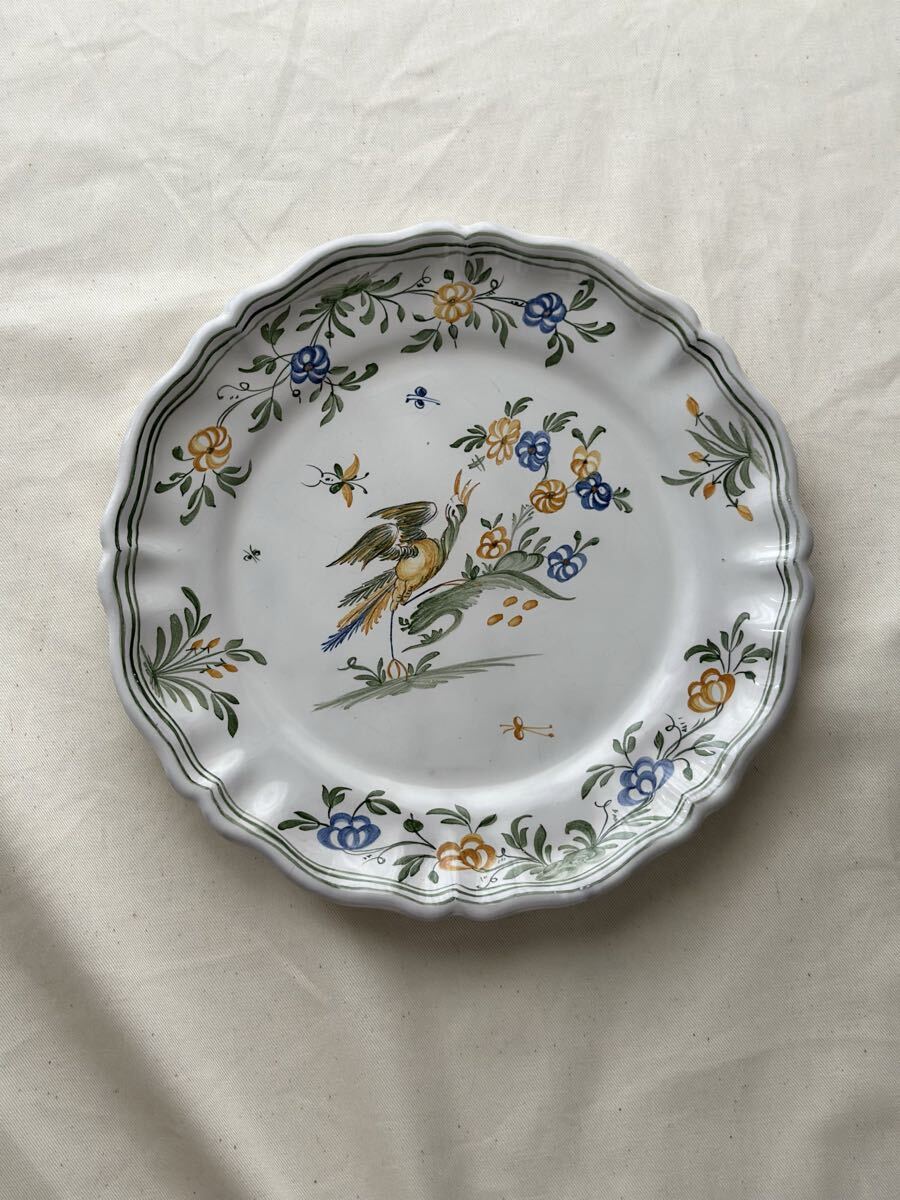 - フランス ヴィンテージ 皿 ムスティエ焼き ムスティエプレート 花リムプレート(ブロカント アンティーク 蚤の市 骨董 平皿)
