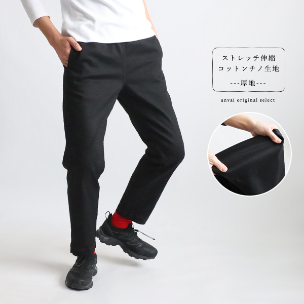 - 秋のパンツ祭り 93cm 赤ステッチ 厚地ストレッチ伸縮コットンチノ生地 ゆったり すっきり脚長パンツ巻き縫いスキニー R07