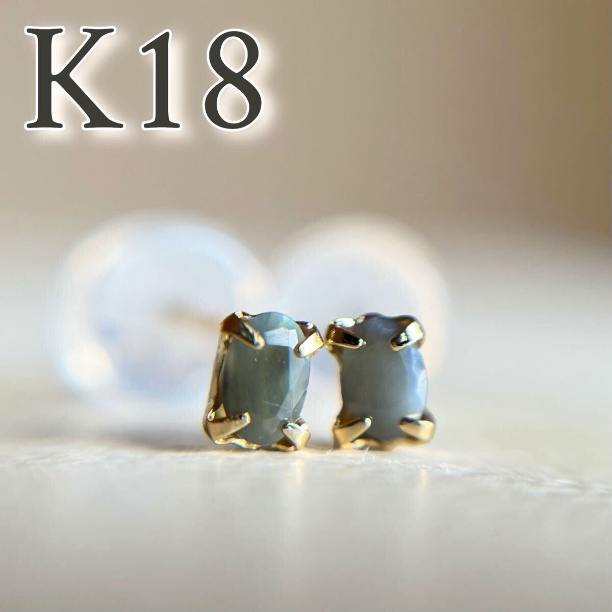 - K18 天然石アレキサンドライト ピアス oval 希少 レア カラーストーン 18金