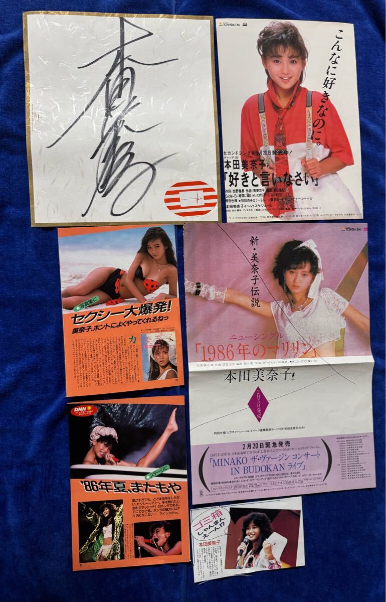 - 本田美奈子 直筆サイン色紙(ゆがみあります画像3,4,5にて)&レアなCM、広告等切り抜き、80年代女性アイドル、昭和歌謡、DISCO