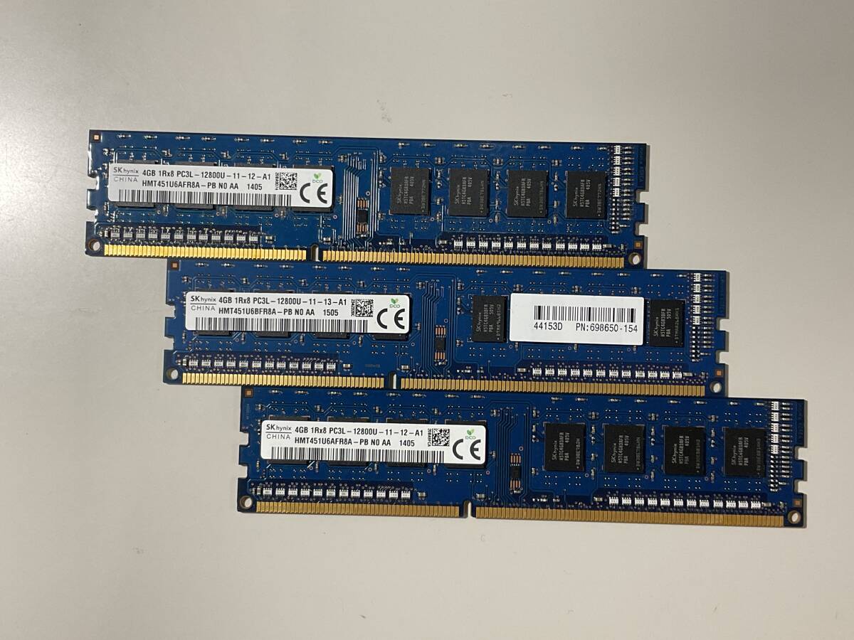 > SK hynix 4GB 1Rx8 PC3L -12800U-11-12-A1 3枚セット 合計 12GB 動作不明