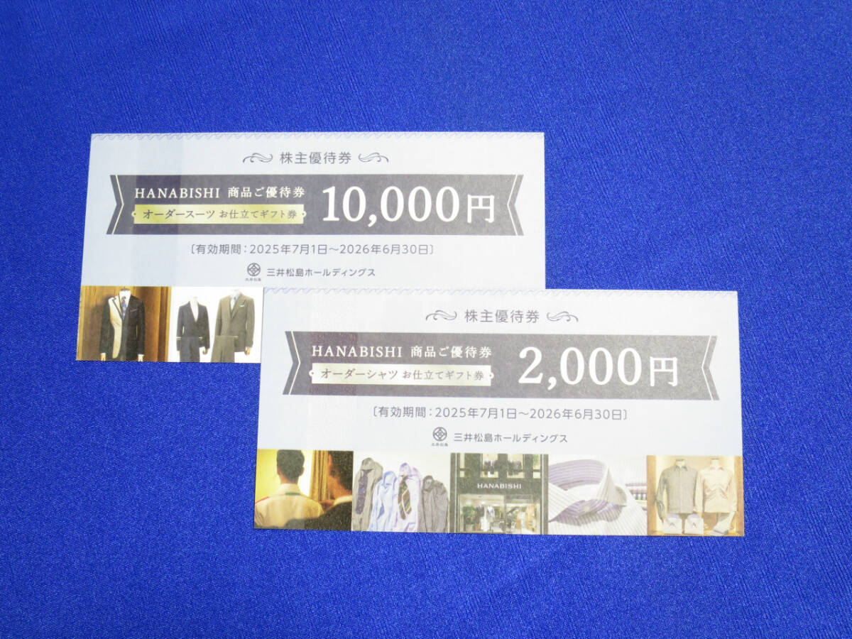 - 2026年6月まで■三井松島ホールディングス 株主優待 オーダースーツお仕立てギフト券10,000円&オーダーシャツお仕立てギフト券2,000円■③