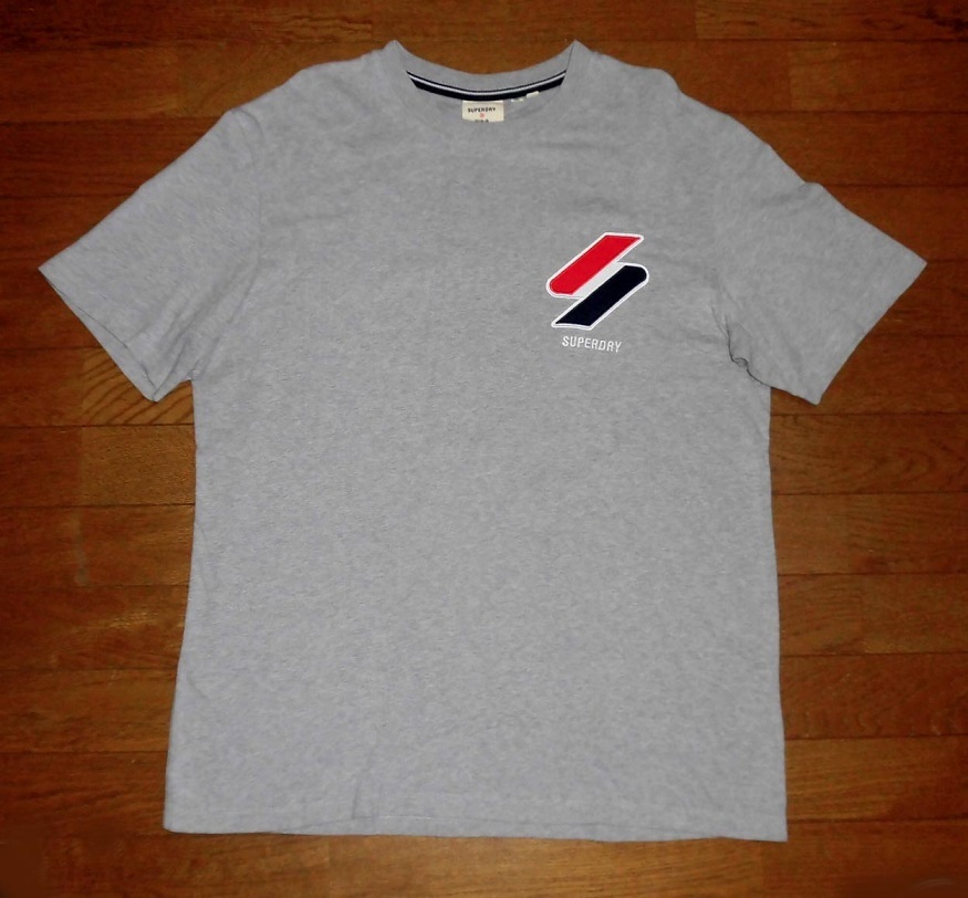 - ロンドン発 SUPERDRY スーパードライ Tシャツ 半袖 コットン 刺繍ロゴマーク 冒険魂 ASH S(M-L相当) USED 美品/極度乾燥