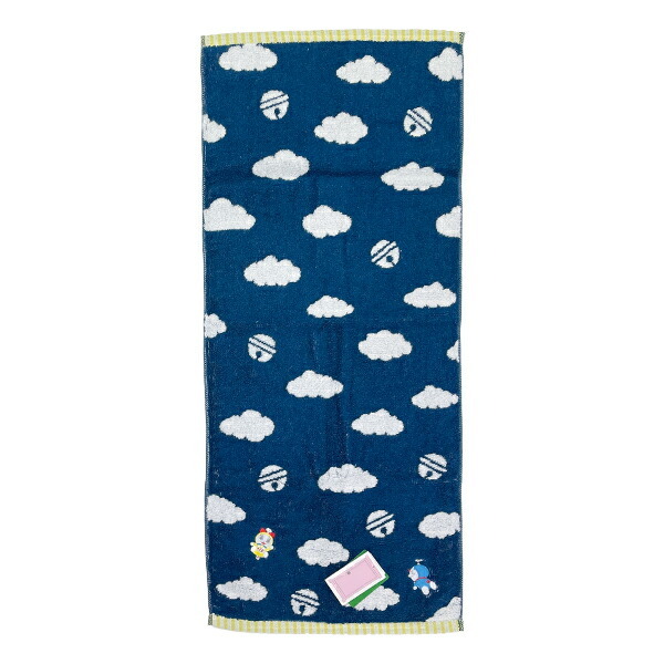 タオル一面が空のデザインとなっており、タケコプターで飛んでいるドラえもんのアップリケが可愛いフェイスタオルです。ふわふわした無撚糸で触りごごちの良いボリュームのあるタオルに仕上がっています。サイズ違いをセットにしてお祝いごとの贈り物にもオススメです。