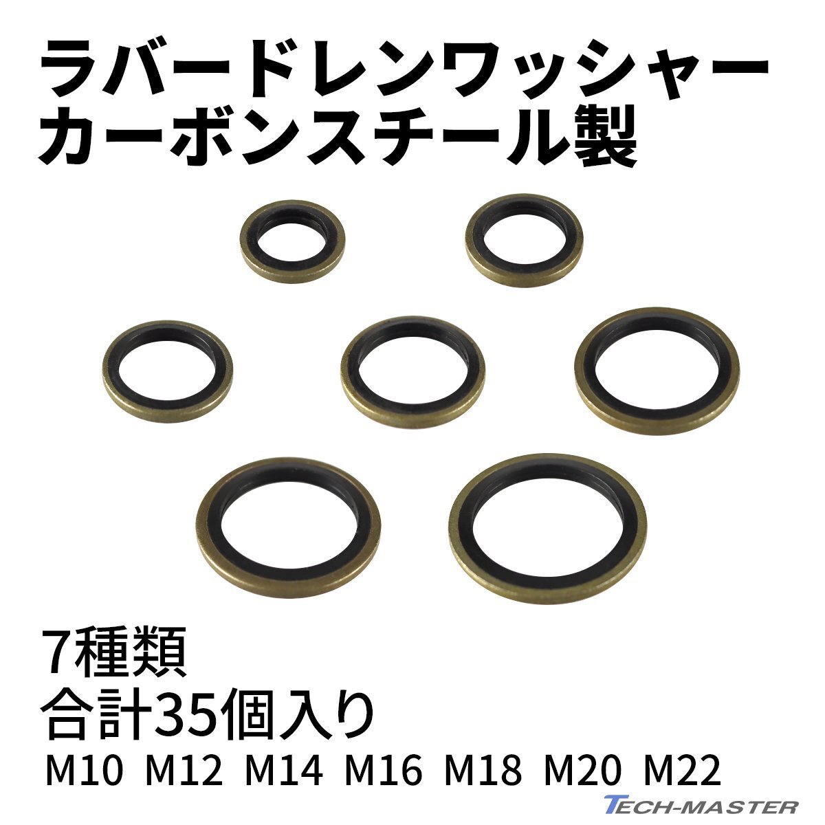 - ラバー付き ドレンワッシャー カーボンスチール製 7種セット 合計35個 IZ528