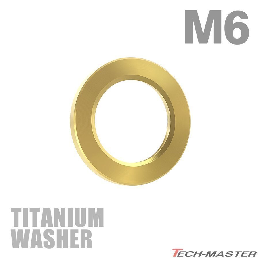 - M6 外径10mm 内径6.5mm 64チタン合金 平ワッシャー フラットワッシャー ゴールドカラー 金色 車/バイク ドレスアップ 1個 JA193