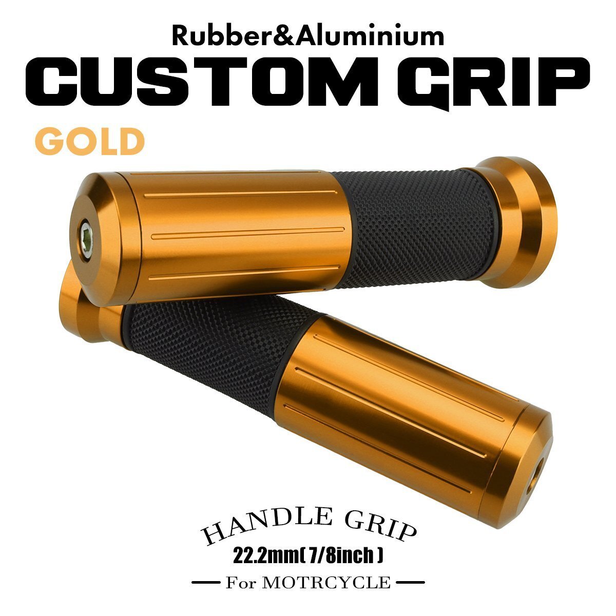 - バイク カスタム グリップ アルミ×ラバー 左右セット バーエンド 付き 非貫通タイプ 22.2mmハンドル用 ゴールド SZ578-G