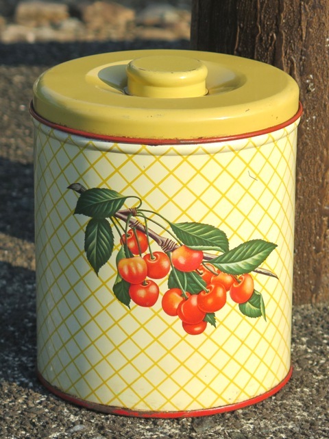 - '50s Decoware Tin Metal Canister Made in USA. ビンテージ デコウエア USA キャニスター チェリー