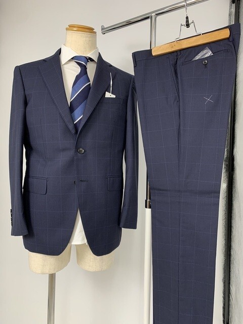 > 新品 特価セール SALE 定価8.69万 74%OFF 新品未使用 スーツ ダークネイビー ウエスト 84㎝ ウインドウペン AB4 毛100% 春 秋 414