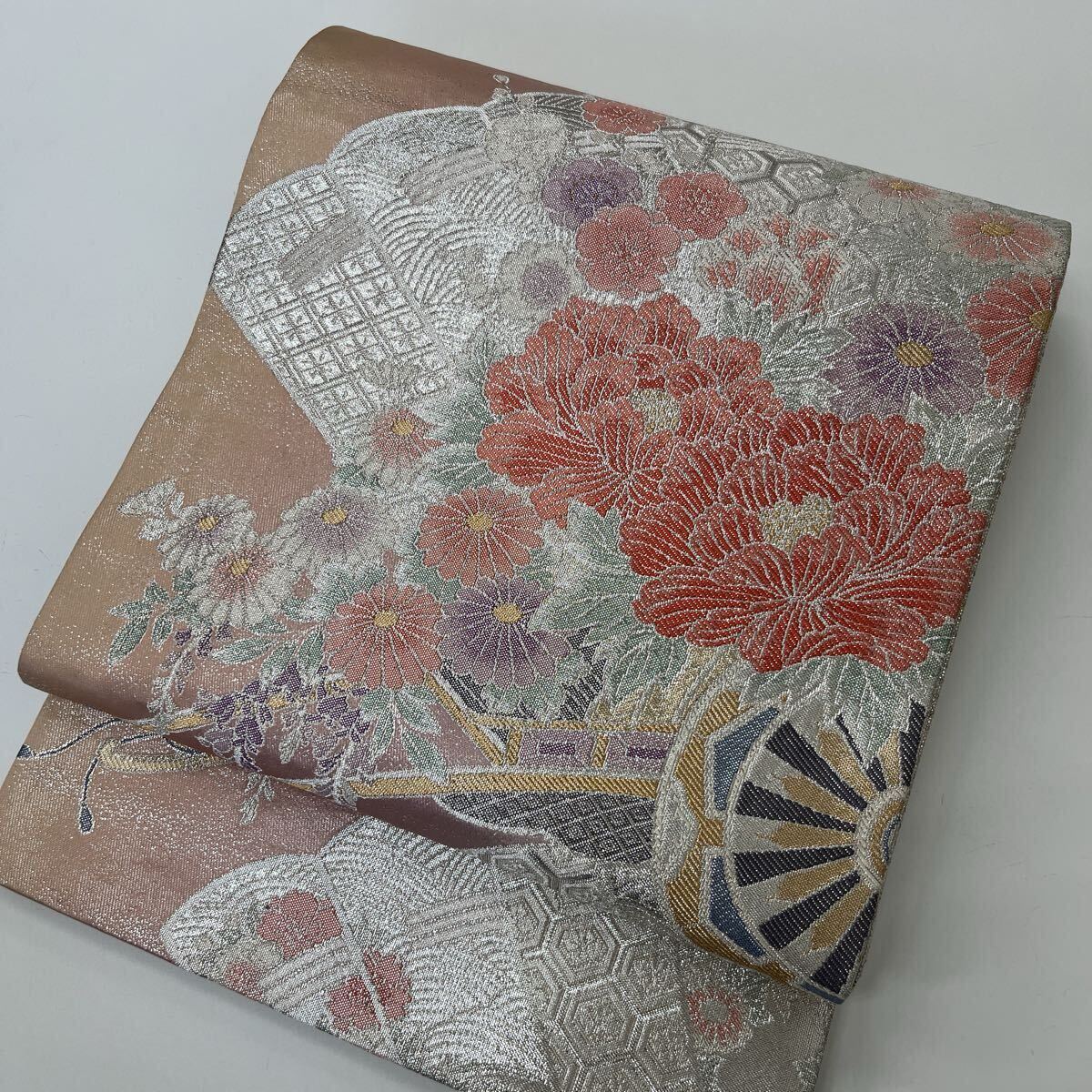 - 袋帯 佐賀錦 扇子に花 織出し 正絹 W-4142