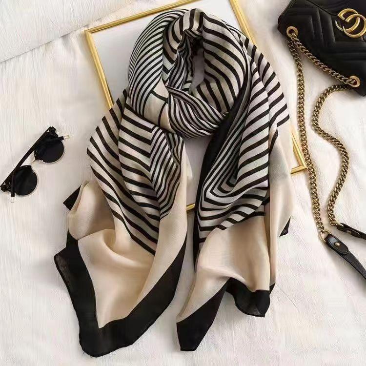 - 大判ショール ストライプ シンプル モノトーン 白黒 ストール 防寒 1192 羽織 巻物 人気 マフラー