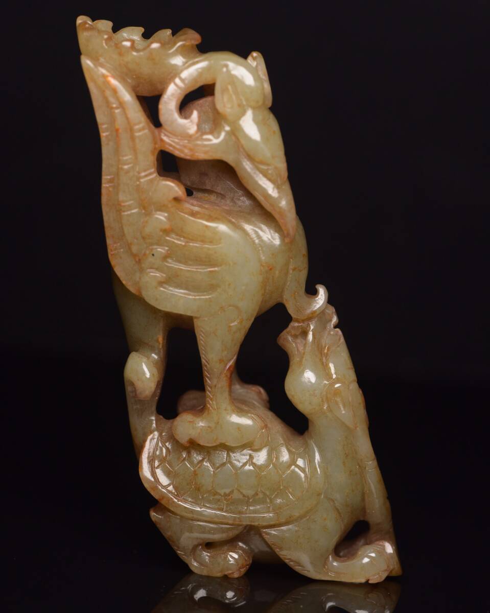 - 『館蔵珍品 和田玉製 細密彫 龍龜 置物 賞物』稀少珍蔵品 古賞物 貴重物品 収蔵品 中国古美術 時代物 古董品