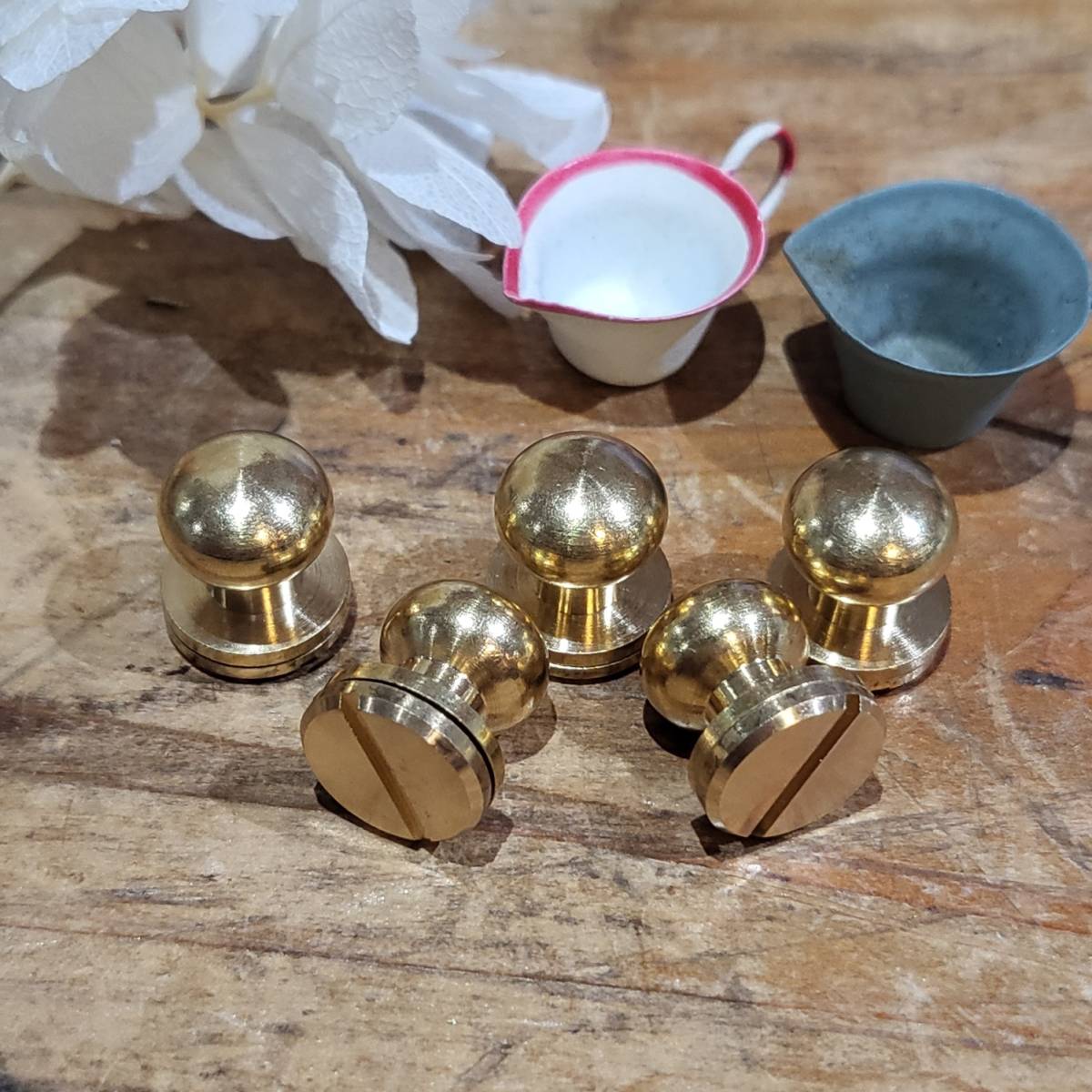 - レザークラフト 真鍮金具 Brass ネジ式 ギボシ 頭直径9mm 5個セット