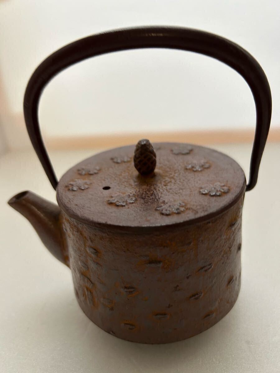 - 南部鉄器/花柄鉄瓶/鉄器/急須/直径約8.37cm/鉄瓶/可愛い/金属工芸/茶道具/レトロ/アンティーク/G