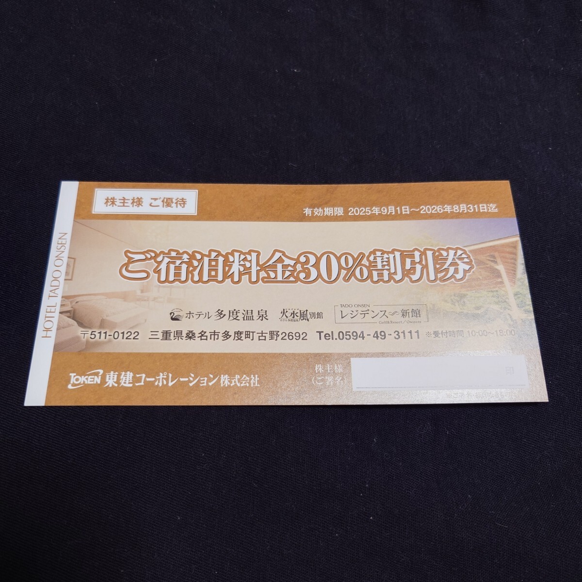 - 東建コーポレーション 株主優待券 ホテル多度温泉 宿泊 30%OFF 1〜9枚 2026/8/31まで