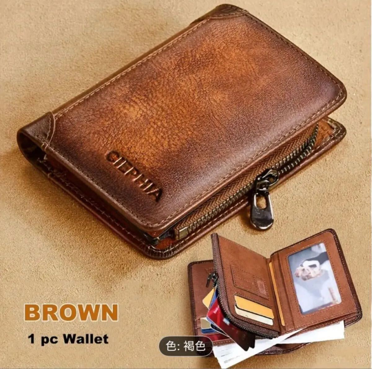 - 【新品】男女兼用ヴィンテージ トリフォールド レザーウォレット