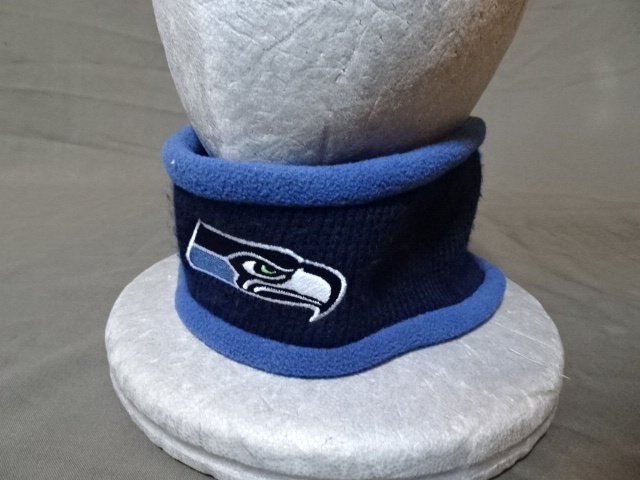 > 激レア USA購入 NFL アメリカンフットボール シアトル シーホークス【Seattle Seahawks】ロゴ刺繍入り ネックウォーマー 中古良品