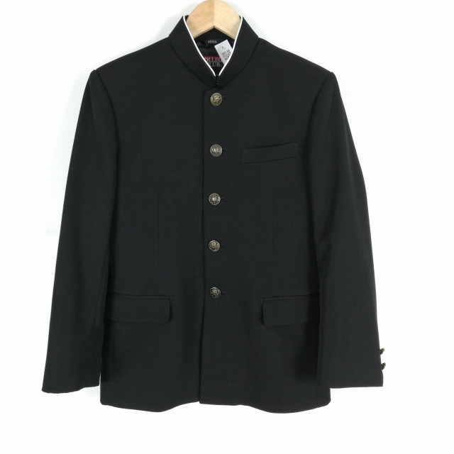 - 学生服 学ラン 155A 男子 上着 丸洗い可 ウール混 ラウンドカラー カシドス 黒 中古 ランクC a3 JJ6863
