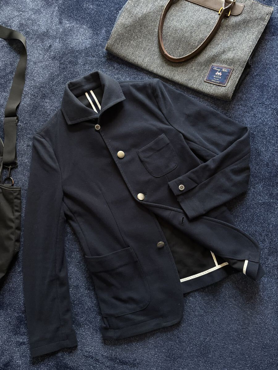 - 超美品 定価14,300円 ナノユニバース nano・universe 高品質ピケ素材 襟イタリアンカラー ジャケット sizeM ダークネイビー系