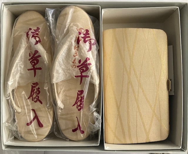 - 御誂 草履・カバンセット(チェーン付き) ゴールド 元箱入り 和装中古 1655