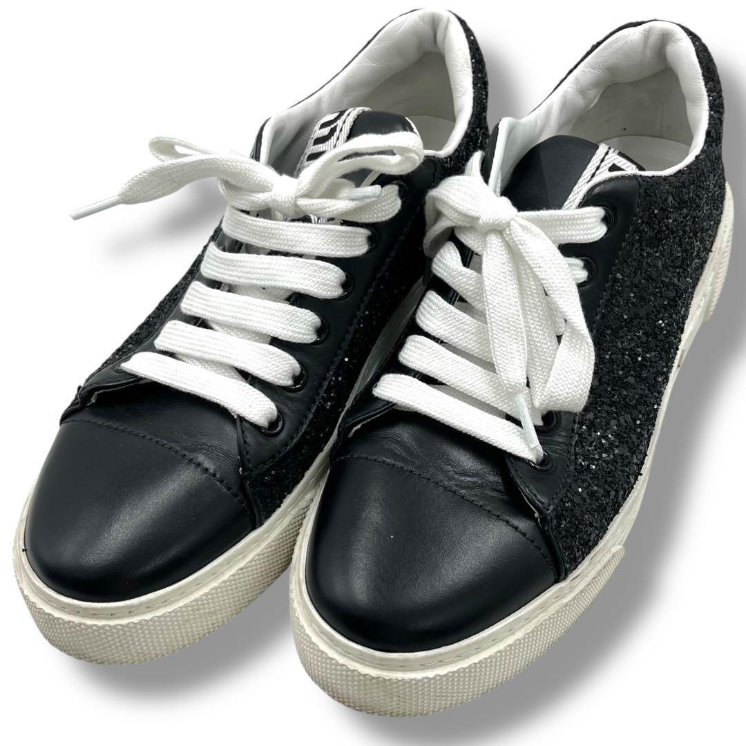 - 美品 MIUMIU ミュウミュウ スニーカー シューズ ラメ 厚底 黒 ブラック