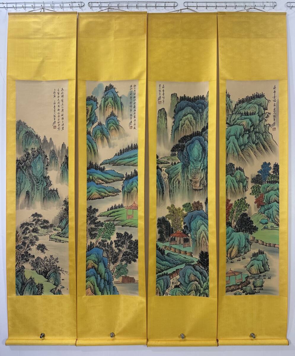 - 中国古画 掛軸 山水図絵 詩文 四曲屏風 巻物 宣紙 中堂画 畫 時代物 東洋彫刻 旧家蔵出し 唐物 中国古玩 古美術品