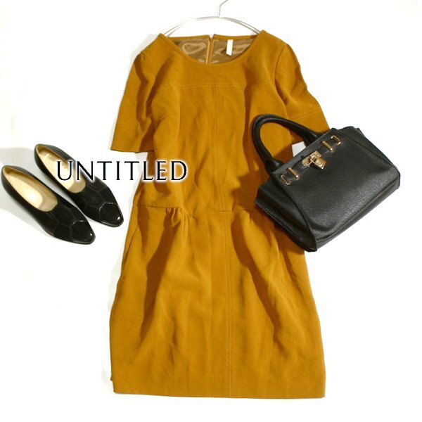 > 美品 UNTITLED アンタイトル 綺麗め シボ スーツ生地 ワンピース 3号 L 春 夏 秋 25E08