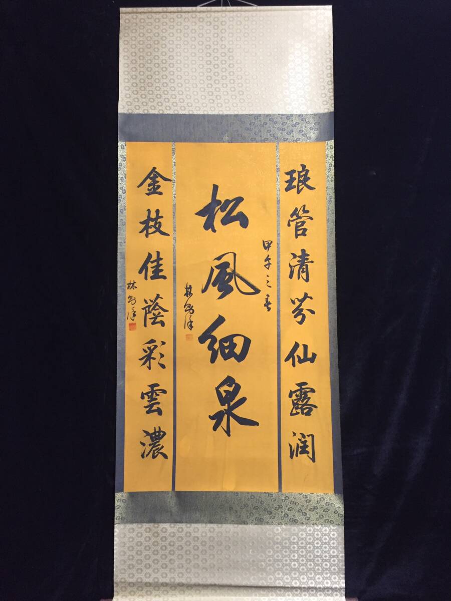- 中国古画 掛軸 松風細泉 書法 字體 手描 巻物 宣紙 四尺中堂画 畫 時代物 東洋彫刻 旧家蔵出し 唐物 中国古玩 古美術品