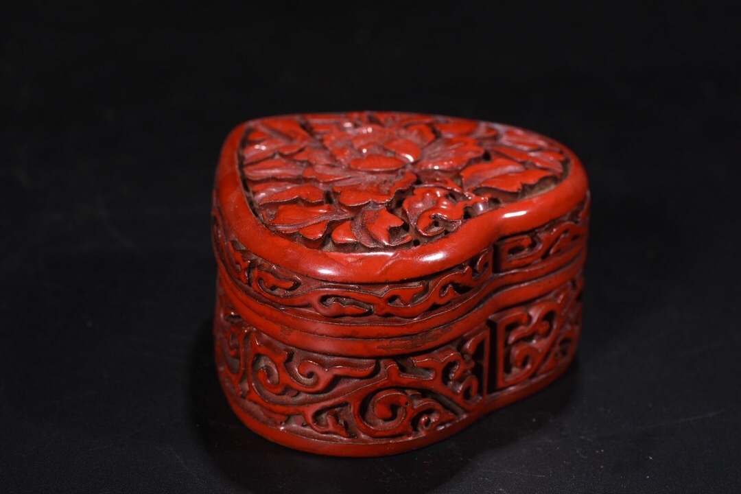 - 蔵友旧蔵出 剔紅漆器彫 花卉紋 心形首飾盒 供養品 置物擺件 古賞物 中国古玩 中国古美術品