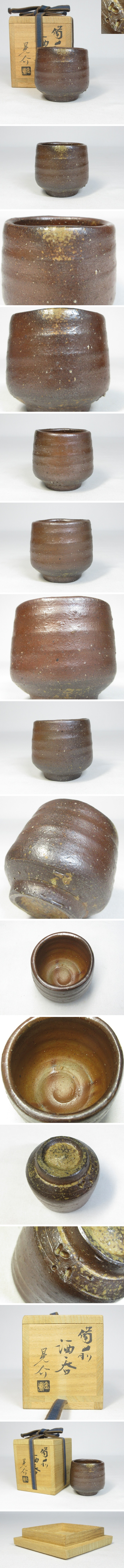 - 【B0145a】酒器 備前焼 岡山県重要無形文化財 金重晃介 酒呑 ぐい呑 酒盃 父:金重陶陽 共箱 即決 送料込み