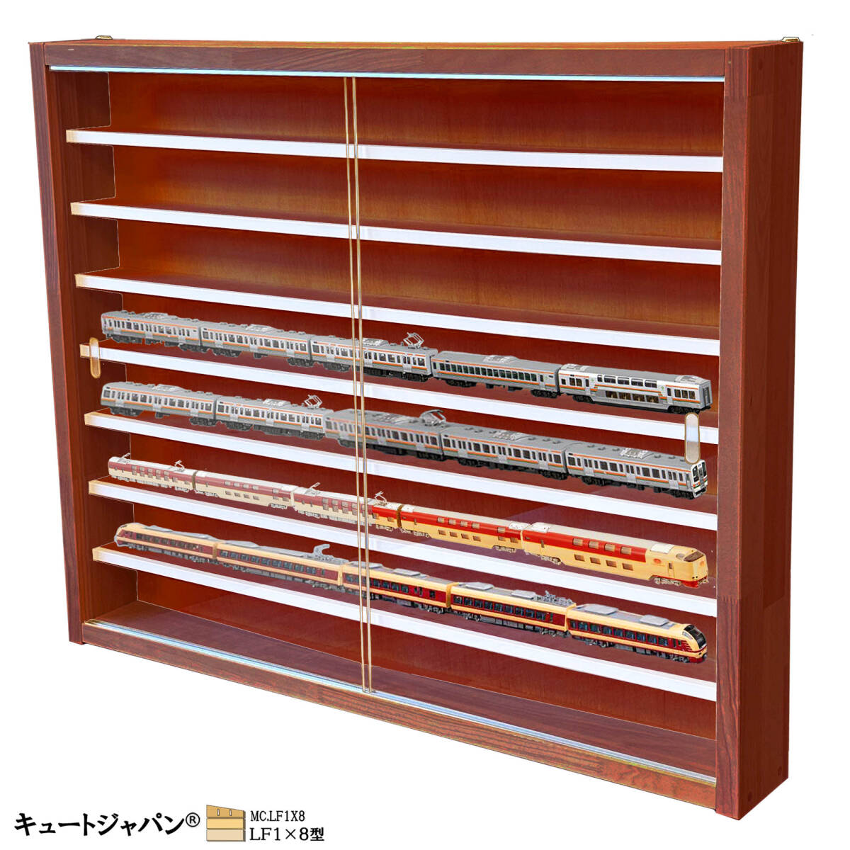 > ★値下げ!送料無料★マホガニ色全塗装 コレクション Nゲージケース ラック シェルフ 収納 棚 アクリル障子付 日本製 LF1×8型